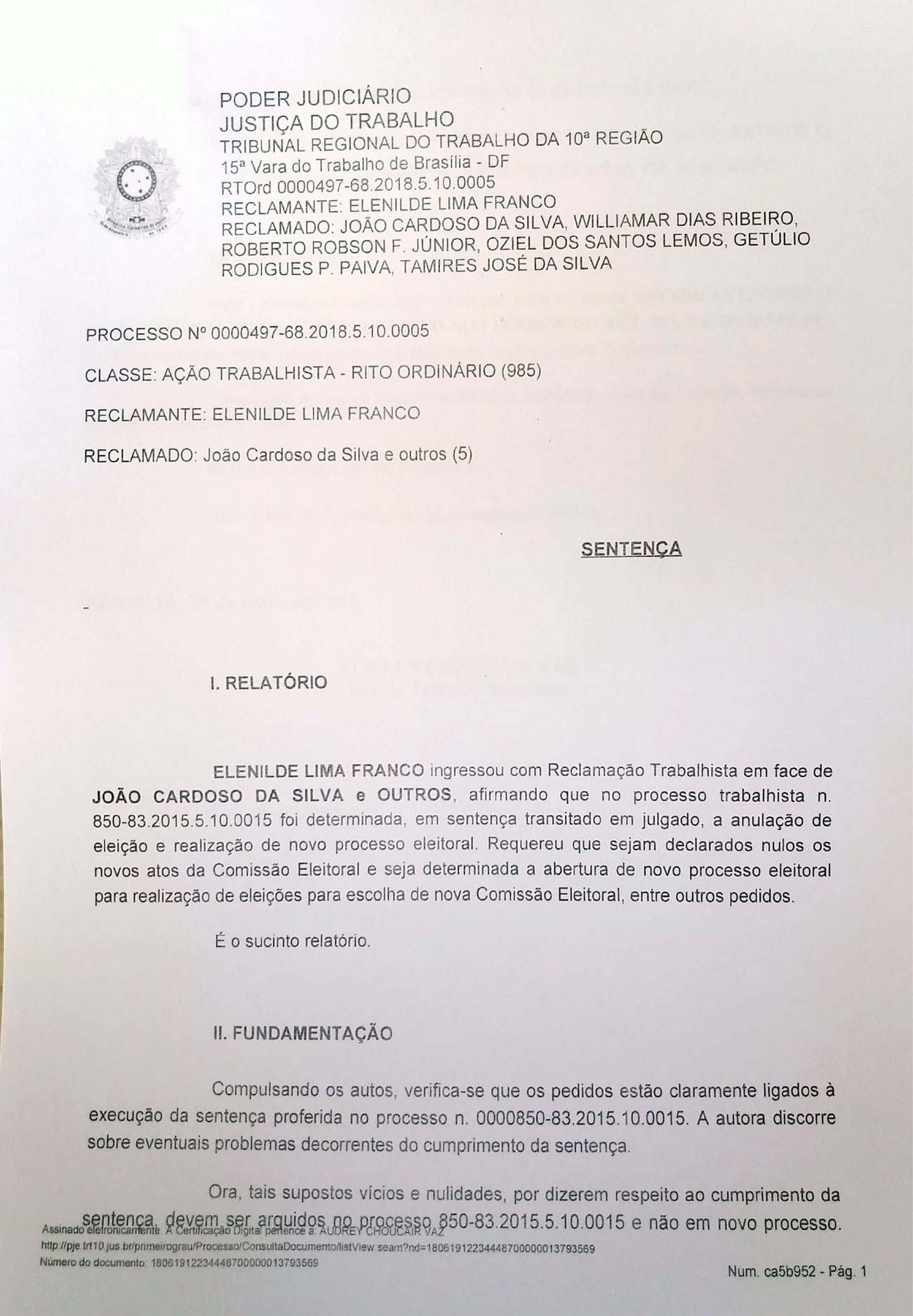 Nesse contexto, sobre a judicialização, a técnica em enfermagem e advogada Elenilde Lima Franco, membro da chapa impugnada pela Comissão Eleitoral, chegou a ingressar com ação para pedir a suspensão do processo eletivo. Porém, tal pedido foi indeferido pela Justiça.