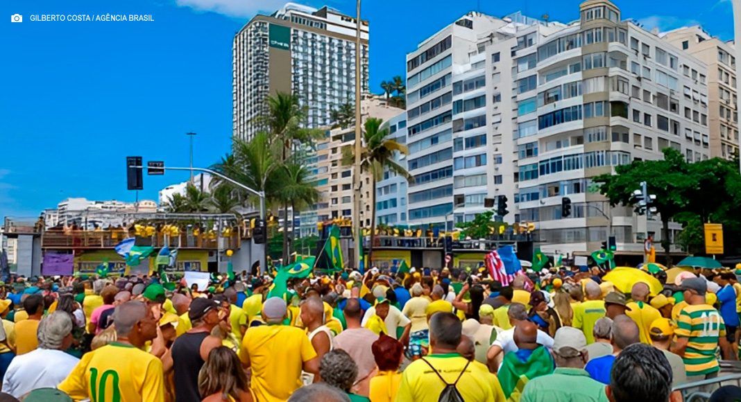 O ex-presidente Jair Bolsonaro (PL) reuniu apoiadores na praia de Copacabana, no Rio de Janeiro, na manhã deste domingo (16), para defender anistia aos condenados por invadir e destruir os prédios do Congresso Nacional, do Palácio do Planalto e do Supremo Tribunal Federal (STF) em 8 de janeiro de 2023. Ele próprio corre risco de ser condenado por tentativa de golpe de Estado.