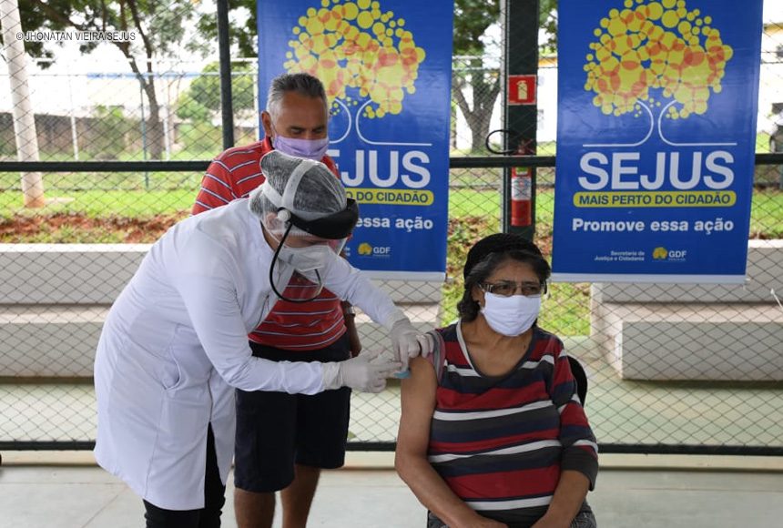Com foco na imunização de idosos de 72 e 73 anos, a Secretaria de Justiça e Cidadania (Sejus), levou a quinta edição da ação Sua Vida Vale Muito Vacinação para a Praça dos Direitos, na QNN 13, em Ceilândia. A vacinação aconteceu durante dois dias, na quinta-feira, (18) e nesta sexta-feira (19), das 9h às 17h.