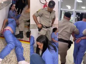Em cenas de vídeo publicado nas redes sociais, é possível ver policiais militares a conter o maqueiro, já algemado. Fora do alcance das imagens, uma colaboradora do hospital afirma que as equipes estavam em troca de plantão, a realizar atendimento de acordo com as possibilidades, além de estarem sem receber pagamento.