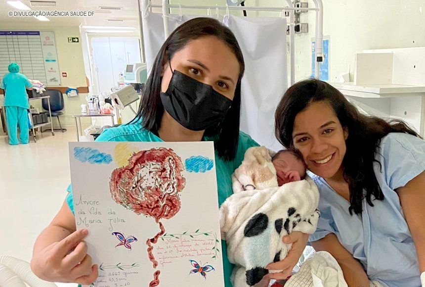 Para tornar ainda mais especial a lembrança do parto, a equipe de enfermeiras obstetras do Hospital Regional de Taguatinga (HRT) decidiu eternizar o momento com o carimbo da placenta das pacientes que dão à luz no local. Entregue às mães logo após o nascimento do bebê, o presente é uma arte comum entre as enfermeiras obstetras e faz parte das ações educativas sobre a gestação e o parto.