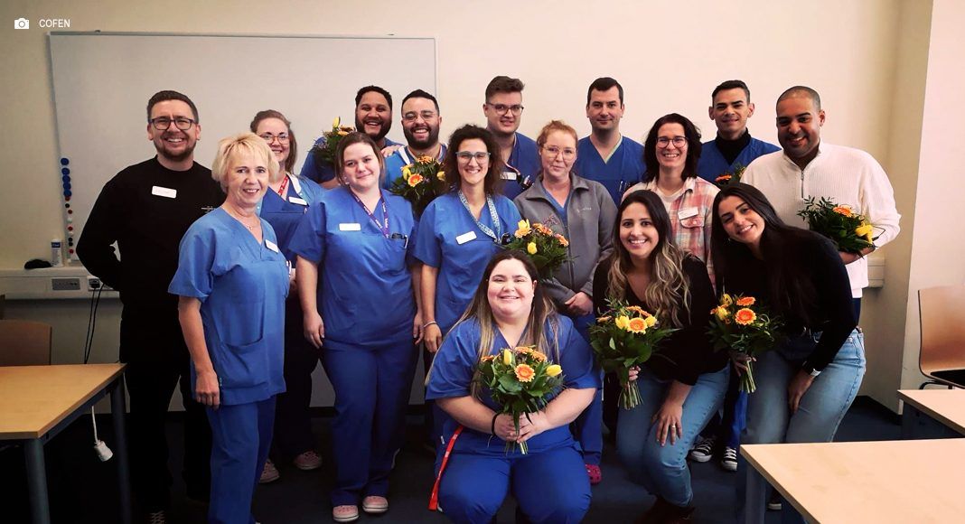 Ela conclui ressaltando a importância da parceria do Cofen com a Alemanha: “Foi essencial, não só para o nosso preparo no idioma antes de virmos, mas também para nossa segurança aqui. O apoio do Cofen fez com que o hospital nos olhasse de forma diferente, sabendo que viemos com suporte e não estávamos sozinhos”, finaliza.