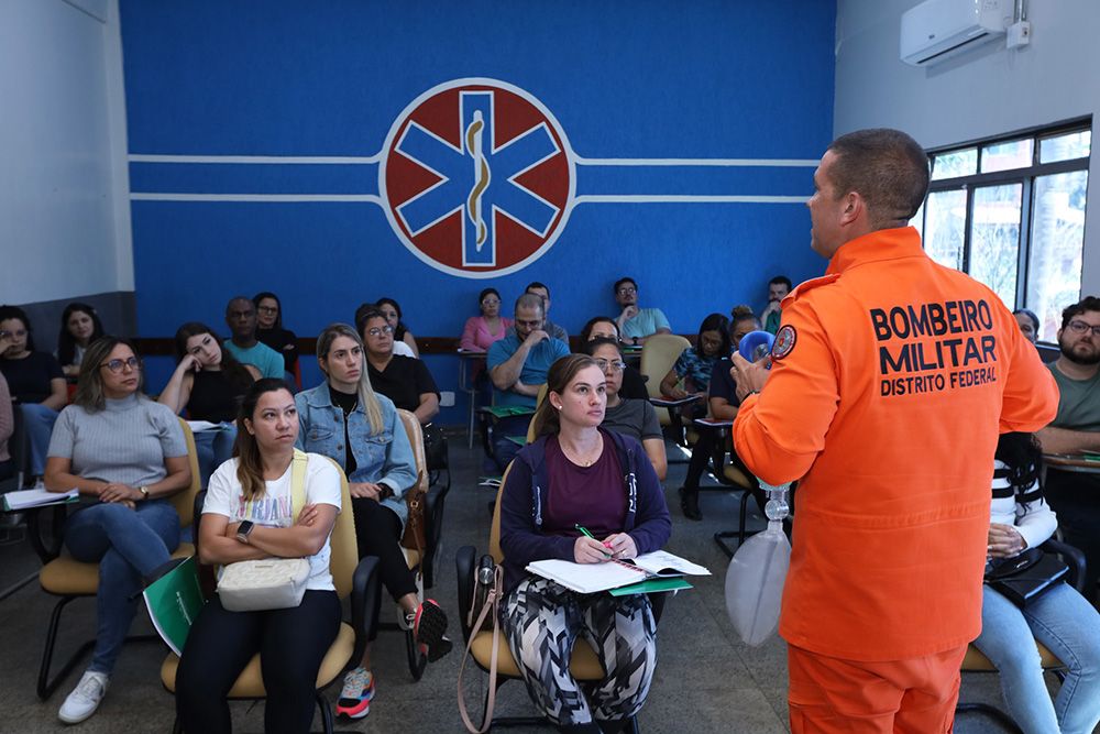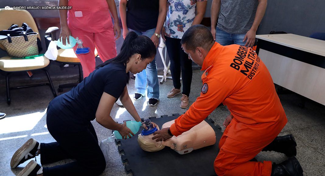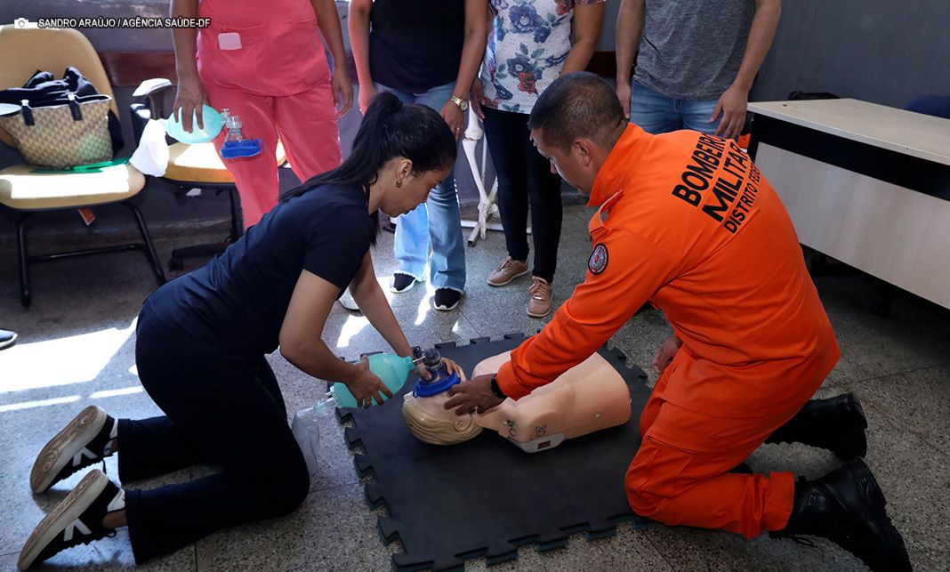 O curso foi ministrado pelo subtenente do Grupamento de Atendimento de Emergência Pré-Hospitalar (GAEPH) do CBMDF, André Rodrigues. “Quando falamos de parada cardíaca, tratamos da emergência mais grave envolvendo a saúde humana. É preciso estar altamente treinado para executar compressões torácicas, ventilação e outros procedimentos com excelência”, explica.