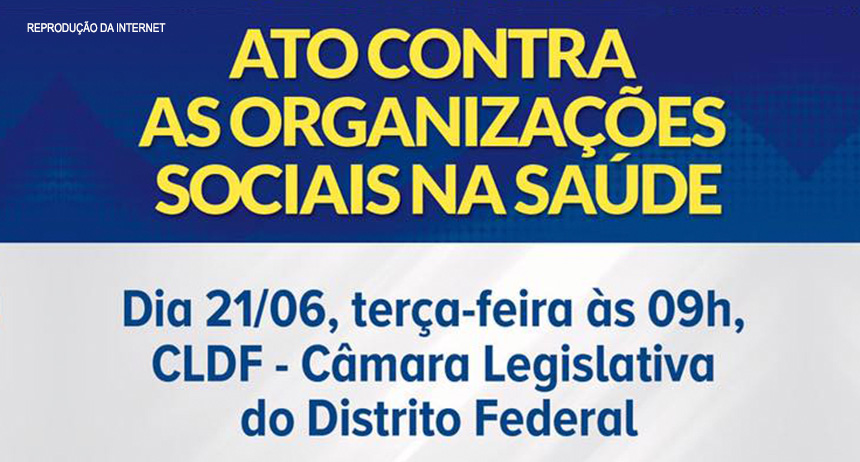 Na terça-feira (21/Jun) os sindicatos dos Auxiliares e Técnicos em Enfermagem do DF (Sindate-DF), dos Enfermeiros do DF (SEDF), o Conselho Regional de Enfermagem do DF (Coren-DF) e ainda a Associação Brasileira dos Enfermeiros no DF (Aben-DF), realizam ato em frente à Câmara Legislativa do DF (CLDF) contra a iniciativa do GDF de contratar as Organizações Sociais (OSs) para atuarem no DF.