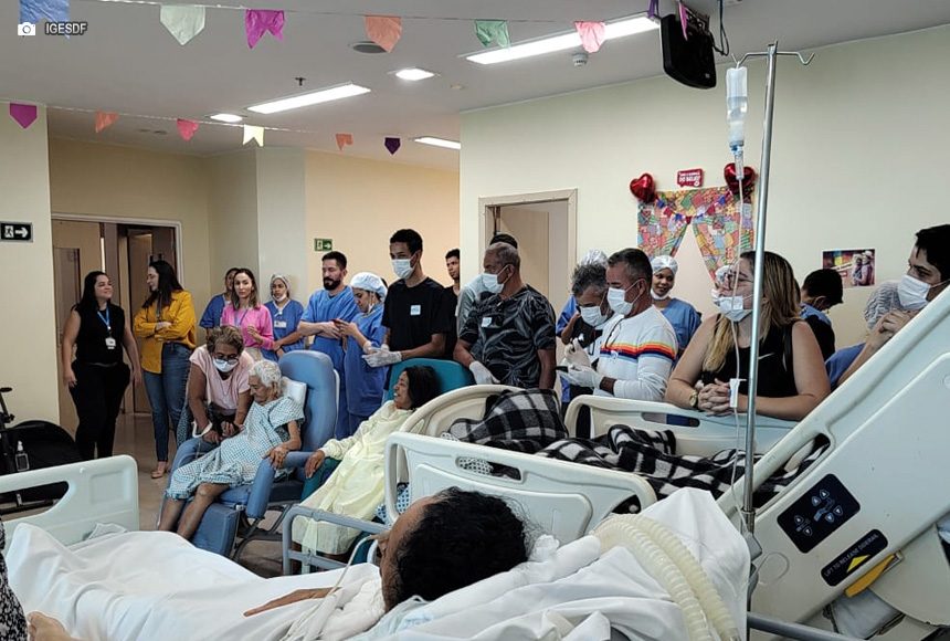 Na última sexta-feira (14), os pacientes internados na unidade de terapia intensiva (UTI) adulto do Hospital Regional de Santa Maria (HRSM) tiveram um momento de descontração e puderam participar de uma festa junina com direito até à música ao vivo.