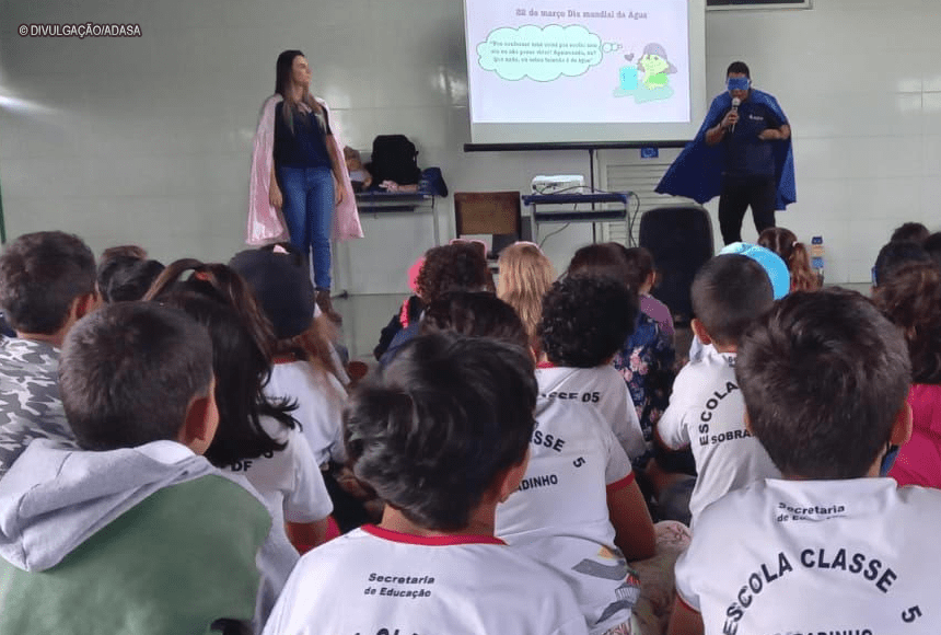 Entre as ações previstas para entreter e conscientizar os mais de 600 alunos da escola, estão a palestra do regulador da Adasa e contador de histórias, Miguel Sartori, a participação da mascote da Agência – Gotita – e dos personagens do desenho musical que embala campanhas de utilidade pública do órgão, dinâmicas educativas promovidas pela Caesb e a presença do Expresso Ambiental, ônibus de educação ambiental da companhia.