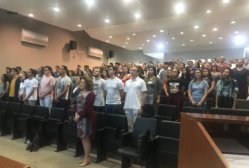 Os 160 novos estudantes dos cursos de graduação de Medicina e Enfermagem da Escola Superior de Ciências da Saúde (Escs) foram acolhidos em aula inaugural no auditório da Fundação de Ensino e Pesquisa em Ciências da Saúde (Fepecs). A solenidade de abertura, nessa segunda-feira (17), foi presidida pelo diretor-geral da Escs, Ubirajara Picanço, que deu as boas-vindas e ressaltou a responsabilidade que a escola tem, com os seus estudantes, em relação aos cuidados com o usuário do sistema de saúde, seja esse usuário público ou privado.
