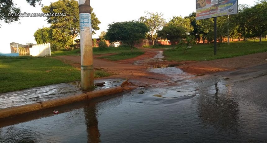 A denúncia foi realizada ao Política Distrital (PD) pela equipe do Gama Cidadão, blog que aborda os problemas do Gama. De acordo com a denúncia, a comunidade local está “sofrendo com o descaso da Administração Regional e da Caesb, que juntas não conseguem solucionar um problema recorrente das tubulações rompidas, que infestam a área com dejetos poluentes oriundos do esgoto a céu aberto dia e noite.”.