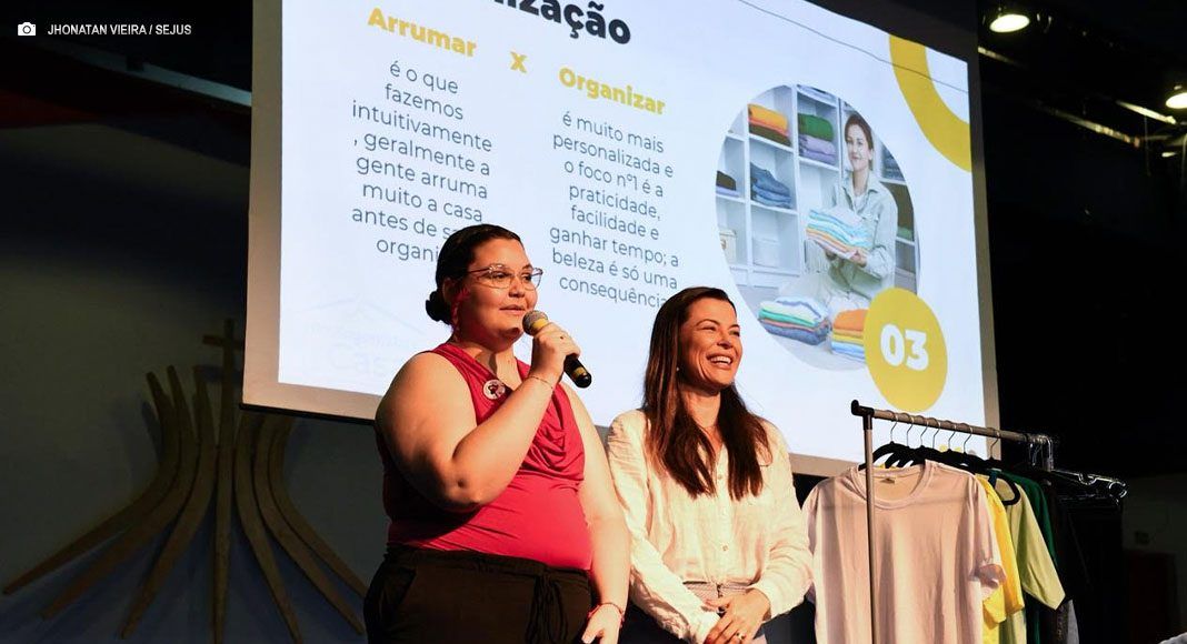 O projeto foca em temas como organização doméstica, limpeza estratégica, autonomia, valorização profissional e geração de renda. Para encerrar o dia, a estudante participou de uma reunião técnica no gabinete da secretária, ao lado de subsecretários e outros servidores, observando diretamente o alinhamento de políticas públicas.