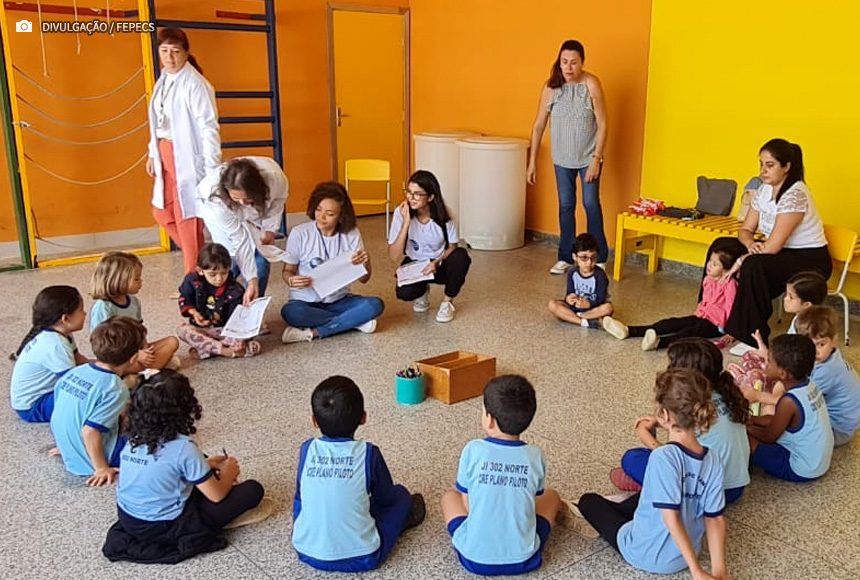 Estudantes da Escola Técnica de Saúde de Brasília orientam crianças sobre saúde bucal