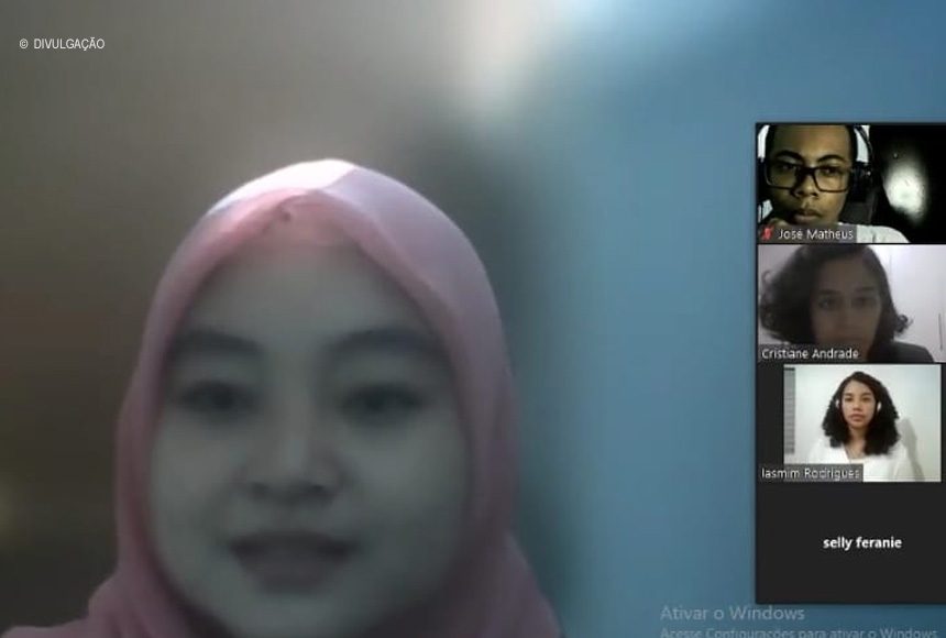 Cristiane e Iasmim apresentaram o estudo em inglês durante videoconferência para os examinadores do ISTEC. Elas cursam a língua estrangeira em um dos Centros Interescolares de Língua (CIL) da rede pública e contam que a experiência de conhecer uma nova cultura e conversar com pessoas de outra nacionalidade foi incrível. “
