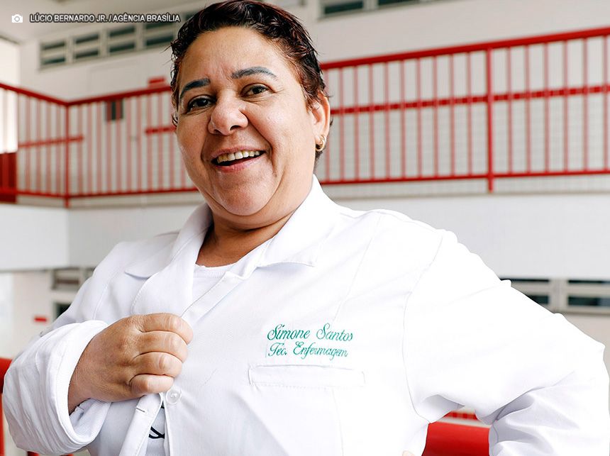 “O voo não pode ser ensinado, só pode ser encorajado”. As palavras de Rubem Alves, na entrada da Escola Técnica Deputado Juarezão, em Brazlândia, ganharam mais significado para a estudante Simone Santos, 49 anos, depois de tantas lutas para conquistar na unidade seu certificado como técnica de enfermagem. Foram mais de 10 anos até ela se encorajar a dar o primeiro passo rumo à profissão que sempre sonhou. “Trabalhei a vida toda como cozinheira, mas sempre quis atuar na área da saúde. Com o apoio da equipe pedagógica, a escola me deu a oportunidade de me realizar profissionalmente”, compartilha a profissional, com orgulho.