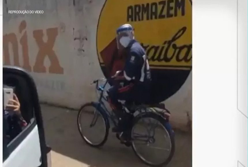 Nas imagens, o profissional aparece pedalando a bicicleta de um paciente que se recusava a receber atendimento por medo de perder o meio de transporte. O paciente estava caído e inconsciente na Avenida Maranhão, uma das mais movimentadas vias da capital do Piauí. A equipe estava de plantão quando recebeu o chamado para atender o homem.