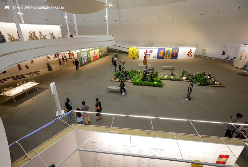 A exposição destaca artistas contemporâneos, como Christus Nóbrega, em cartaz com a obra Brasília, enfim. Nela, o professor do Departamento de Artes Visuais da Universidade de Brasília (UnB) propõe uma reflexão sobre a ancestralidade e a identidade, imaginando uma capital utópica e abordando a ideia de como construir um futuro sem esquecer o passado.