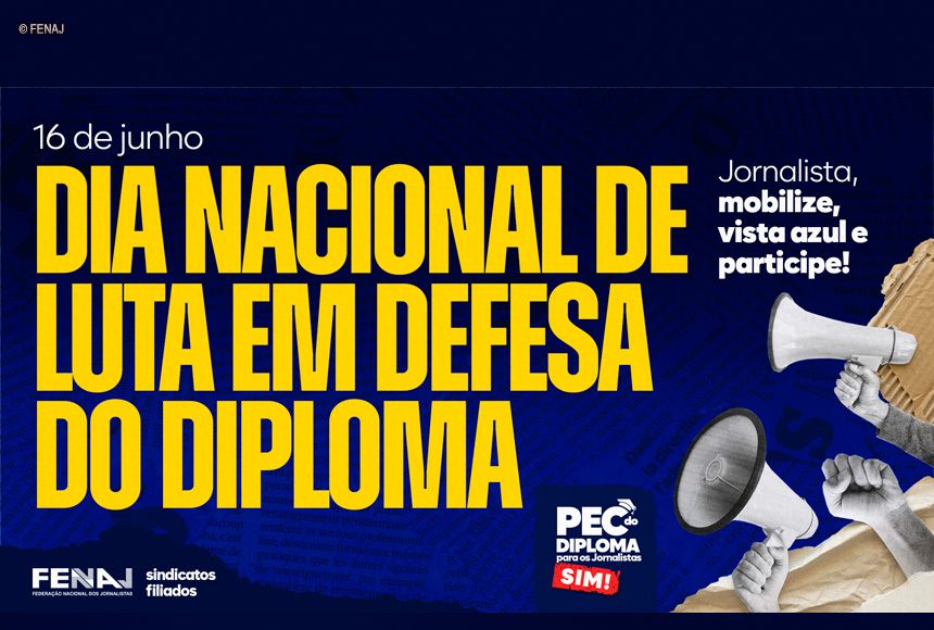 Na véspera da data em que completam 14 anos da decisão do Supremo Tribunal Federal (STF) que derrubou o critério impessoal e transparente de acesso à profissão de jornalista no Brasil, a categoria volta às redes sociais em mais um Dia Nacional de Luta em Defesa do Diploma. A mobilização digital é organizada pela Federação Nacional dos Jornalistas (FENAJ) e seus 31 Sindicatos filiados.