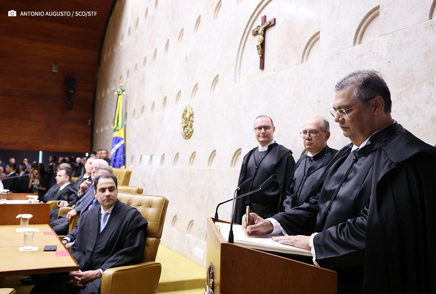 Flávio Dino prestou o compromisso regimental de “cumprir fielmente os deveres do cargo de ministro do Supremo, em conformidade com a Constituição e com as leis da República”, e foi declarado empossado pelo presidente do STF. Em seguida, foi conduzido pelos dois ministros à sua cadeira no Plenário.