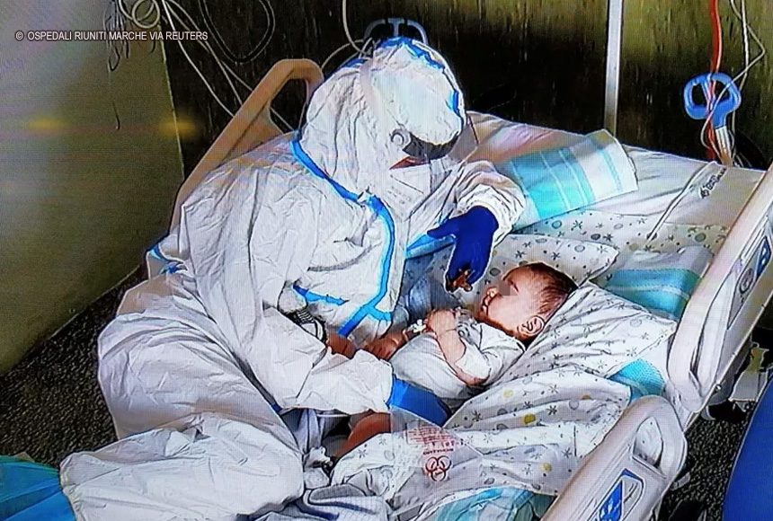 Segundo informações da agência italiana Ansa, a imagem foi registrada no Hospital Salesi de Ancona, onde o bebê de 7 meses foi internado para passar por uma cirurgia delicada. Porém ele e sua mãe testaram positivo para o novo coronavírus.
