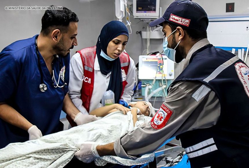 Nas redes sociais, a assessoria do Ministério da Saúde da Palestina informou que ao menos 10 paramédicos morreram e outros 27 foram feridos enquanto trabalhavam, socorrendo as vítimas em território palestino, desde o início do conflito, há uma semana. A pasta também tem, recorrentemente, pedido que os cidadãos que puderem procurem um banco de sangue ainda operando a fim de doar sangue às vítimas do confronto.