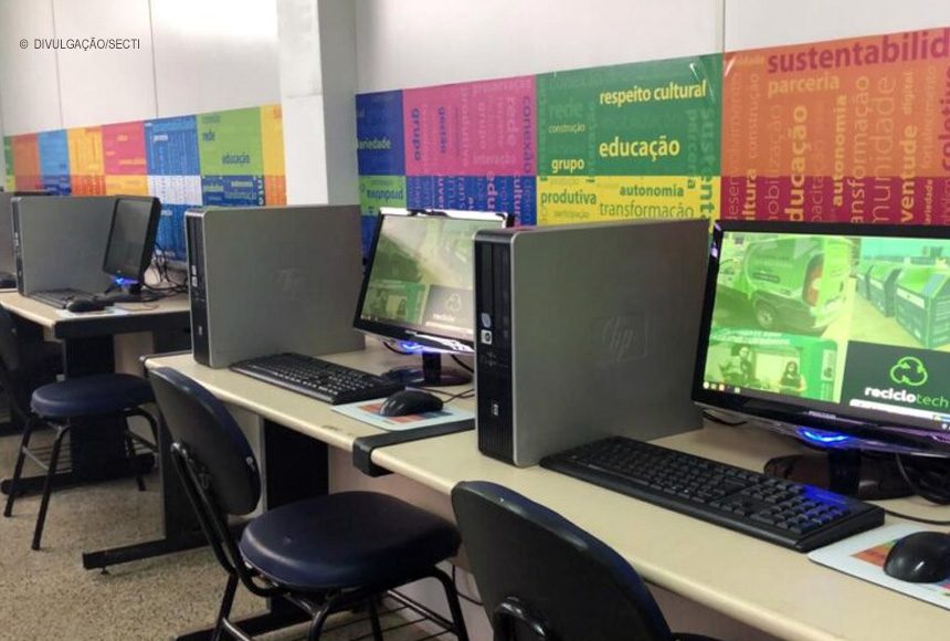 O Reciclotech é a ação de inclusão digital da Secretaria de Ciência, Tecnologia e Inovação (Secti) que visa potencializar a gestão inteligente de resíduos eletrônicos. O programa atua na conscientização do descarte correto de materiais eletrônicos, promovendo uma série de ações educativas que contribuem para democratizar o acesso à tecnologia, por meio do recondicionamento e de doações de equipamentos.