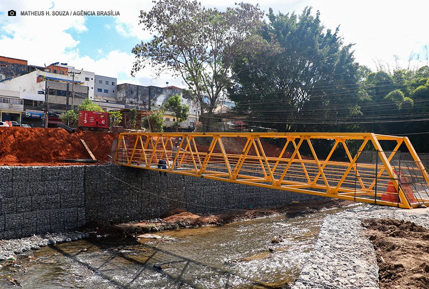 Recentemente, a Companhia Urbanizadora da Nova Capital (Novacap) concluiu as obras de alargamento do leito do córrego e dos muros de gabião – estruturas de arame recobertas com PVC montadas manualmente de forma semelhante a caixas, em que cada uma é preenchida com pedras.