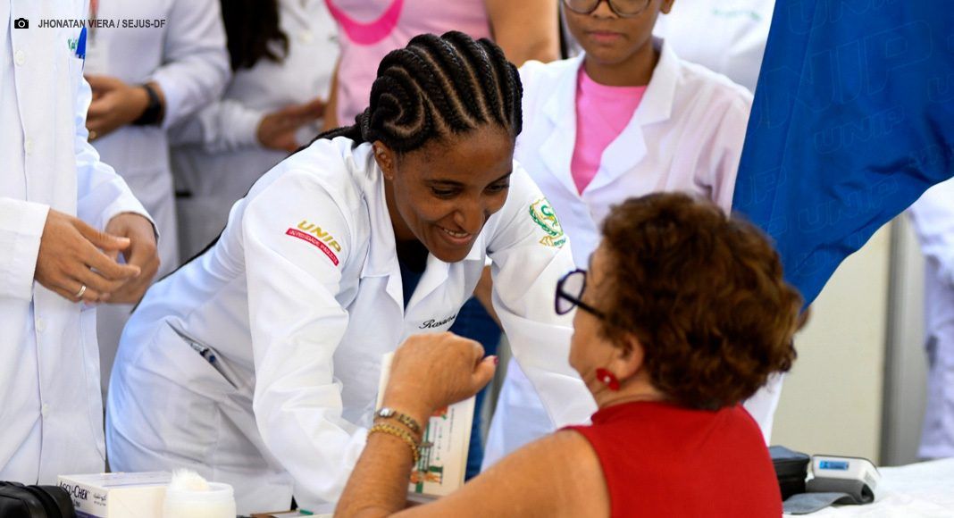 Enquanto a mãe passava pela triagem, Heraldo aproveitou para resolver pendências no posto do Na Hora, como multas de trânsito do Detran e contas atrasadas de água e luz. A unidade móvel presente no evento também oferece serviços do BRB, Codhab, INSS, Procon e Receita Federal, entre outros. “Vim por causa da minha mãe, mas acabei resolvendo muita coisa também”, contou o eletricista. Já Edna tirou um tempo para si: fez a sobrancelha e participou de uma oficina de maquiagem, oferecida pelos voluntários do programa Voluntariado em Ação, da Sejus.