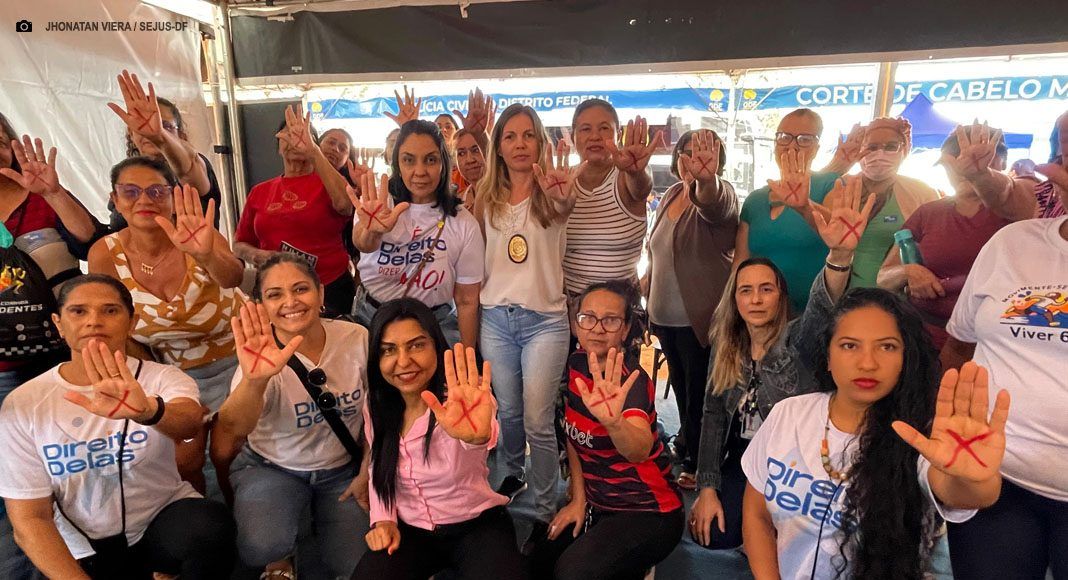 Profissionais da área de segurança pública também participaram, como a agente policial Elisângela Agostini, lotada no Núcleo Integrado de Atendimento à Mulher (Nuiam), na 6ª Delegacia de Polícia Civil, no Paranoá. “Viemos explicar o que é violência, divulgar o trabalho do Núcleo e reforçar que a mulher não deve se calar. Violência é crime e precisa ser denunciada; nós, da Polícia Civil, trabalhamos para garantir a proteção delas”, afirmou.