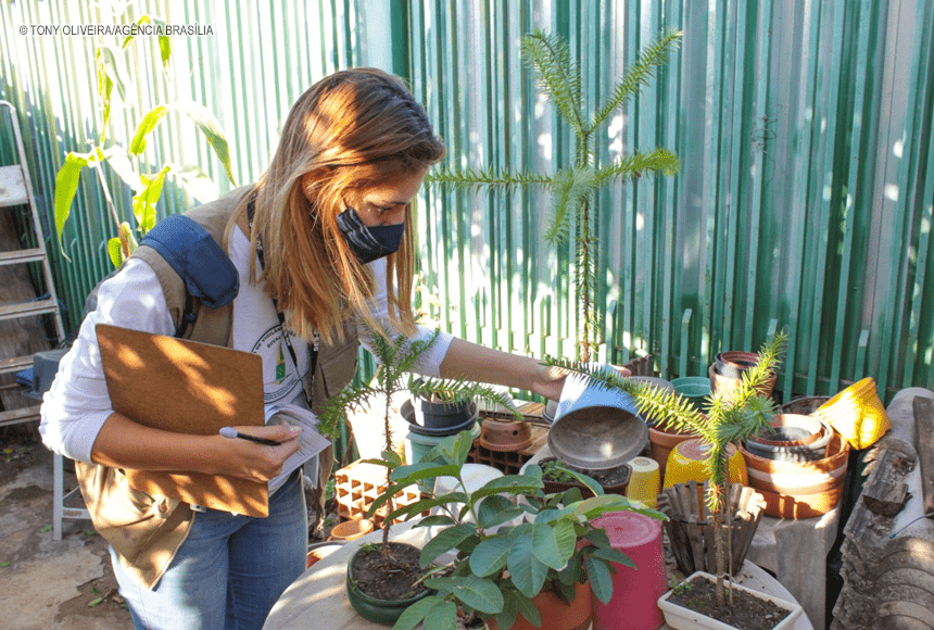 → Nas residências horizontais, como casas, é importante observar o quintal para que não haja nenhum tipo de recipiente com água parada;