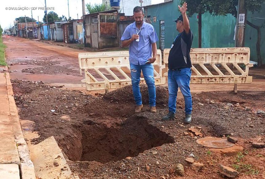 A chuva causou alagamentos e estragos em algumas localidades das duas regiões administrativas. Por isso, na manhã deste domingo (16), equipes do Polo Oeste II do GDF Presente e das administrações regionais circularam pelas cidades para mapear os pontos críticos e sinalizar os locais para evitar acidentes.