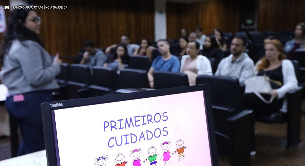 Quais vacinas são aplicadas nos primeiros dias de vida? Como trocar fraldas corretamente? E o banho do bebê, como fazer de forma segura? Com 31 semanas de gestação, Mírian Sales, 28, encontrou as respostas para essas e outras dúvidas, neste sábado (14), durante o curso gratuito para gestantes e acompanhantes promovido no Hospital Materno Infantil de Brasília (Hmib). A iniciativa tem como objetivo preparar mães e sua rede de apoio para os cuidados com o recém-nascido e ocorre todo segundo e quarto sábado do mês, das 9h às 12h, no grande auditório da unidade.