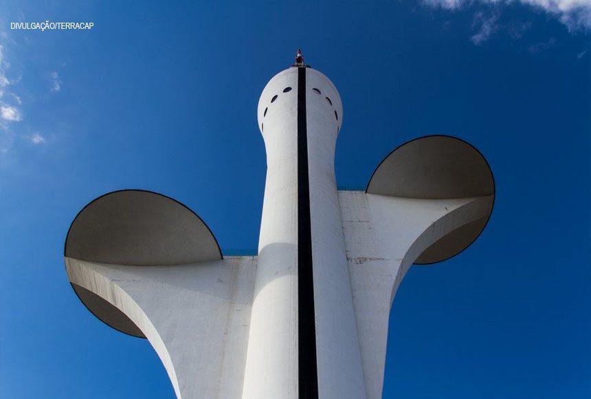 No alto da estrutura, duas cúpulas de vidro e um mirante propiciam uma das mais belas vistas da capital. O transporte dos visitantes é feito por meio de três elevadores. Além de um espelho d’água, o complexo de lazer conta com lojas e boxes em seu térreo.