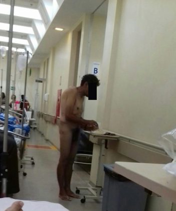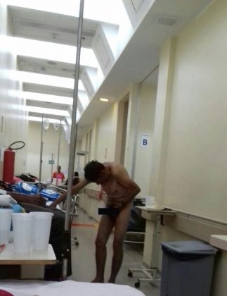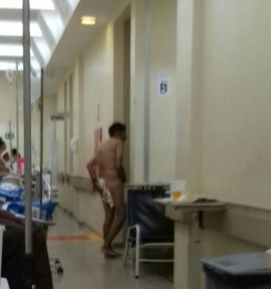 Nesta terça-feira (15/Mai), Política Distrital (PD) recebeu denúncias que reafirmam, a situação caótica que o governador do DF, Rodrigo Rollemberg (PSB) pretende expor as crianças que precisam atendimento do Gama, Santa Maria e entorno. Sem condições apropriadas, um senhor de idade, não identificado, se higieniza, nu, no corredor que dá acesso à pediatria do Hospital Regional de Santa Maria, unidade que absorveu a demanda do Hospital Regional do Gama (HRG) após oficialização de fechamento pelo secretário de Estado de Saúde do DF (SES-DF), Humberto Fonseca.
