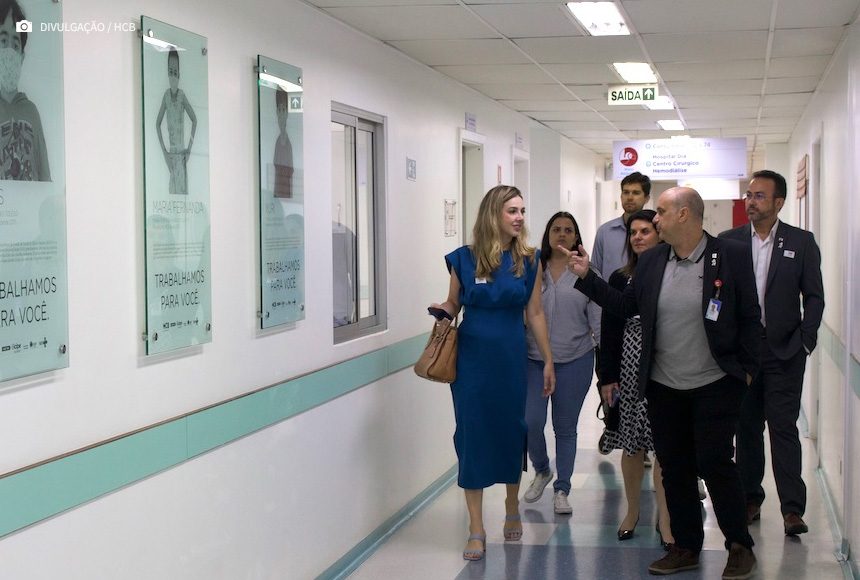 Depois de conhecer espaços do HCB, a área de simulação realística e o centro de processamento de dados –, os visitantes se reuniram com a assessora jurídica do hospital