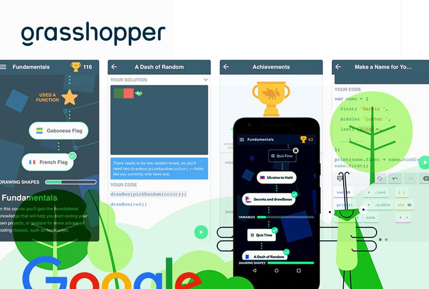 Segundo a Google, o aplicativo mostra os fundamentos das linguagens de programação utilizadas para a internet e ensina as terminologias básicas para a compreensão do trabalho de um programador, como funções, variáveis, condicionantes, operadores e objetos. O Grasshopper também traz troféus e conquistas que mostram a evolução do aprendizado.