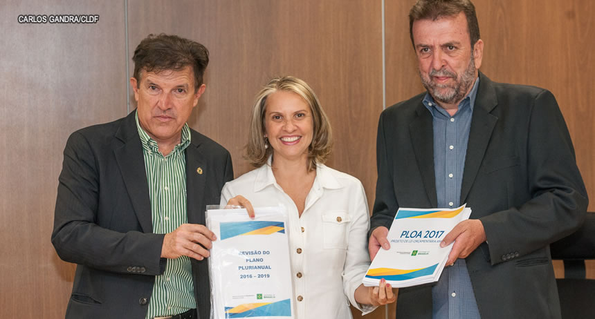 O Projeto de Lei Orçamentária Anual de 2017 chegou à Câmara Legislativa nesta quinta-feira (15), data limite para o envio da proposta pelo governo do Distrito Federal. A Secretária de Planejamento, Orçamento e Gestão do DF, Leany de Sousa Lemos, entregou pessoalmente o projeto para o presidente da Casa, Juarezão (PSB), e para o presidente da Comissão de Economia, Orçamento e Finanças, Agaciel Maia (PR).