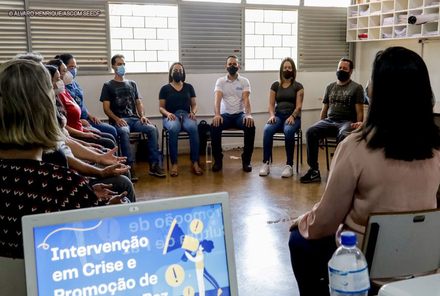 O documento também fala dos projetos desenvolvidos para a qualidade de vida do servidor da SEEDF, como o projeto Intervenção em Crise e Promoção de Cultura de Paz, que busca auxiliar o professor e a comunidade escolar no enfrentamento dos eventos traumáticos relacionados às situações de violência vivenciadas no ambiente escolar; o projeto Autocuidado e Saúde: Escuta Sensível e Vivências de Cantoterapia, que visa a valorização, motivação, integração e troca de experiências com foco no bem-estar dos servidores; e o projeto Gerenciamento de Estresse, que tem o objetivo de auxiliar no autocuidado e na prevenção ao estresse.
