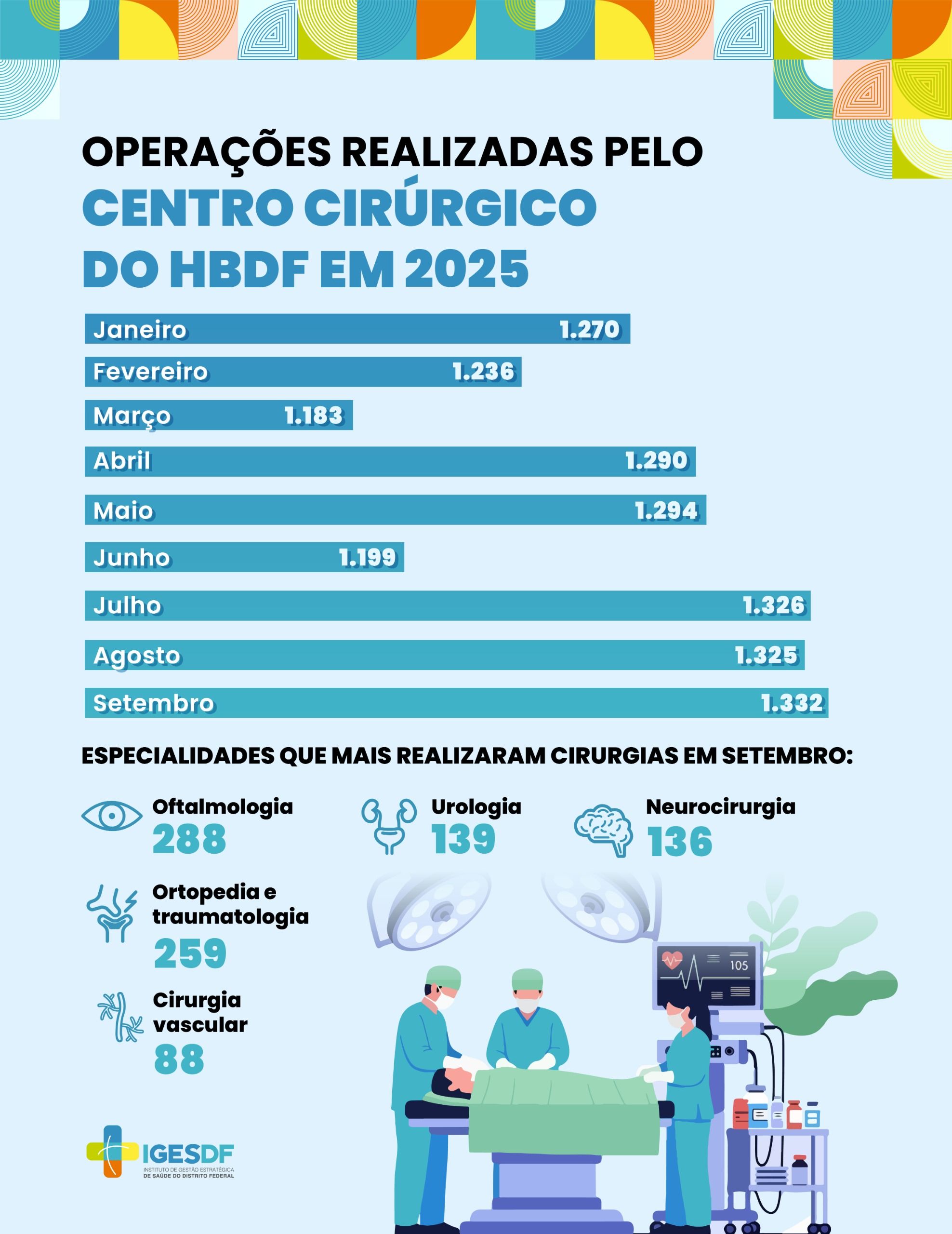 O Centro Cirúrgico do Hospital de Base do Distrito Federal (HBDF) estabeleceu um novo recorde histórico em setembro de 2025, ao realizar 1.332 cirurgias. Esta é a terceira vez que a unidade supera sua marca no ano, após registrar 1.294 procedimentos em maio e 1.326 em julho. Em setembro, a unidade atingiu 100% dos procedimentos programados, mantendo uma média diária de 44 operações.
