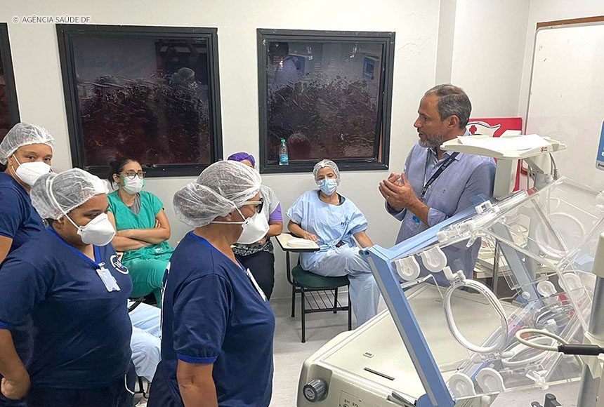Profissionais de enfermagem e de limpeza do Hmib passam por treinamento com o fabricante sobre o funcionamento das incubadoras | Fotos: Ascom/SESDF