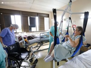 A responsável pela Fisioterapia, Fonoaudiologia e Terapia Ocupacional do Hran, Laura Cristina Romano Arcuri, completa que o equipamento ajuda a prevenir trombose, escaras e até pneumonia, já que é possível manter os pacientes sentados e em pé por mais tempo, o que melhora a respiração. “Em alguns casos, também é possível reduzir a equipe de profissionais da saúde mobilizada para atender a um paciente”, afirma.