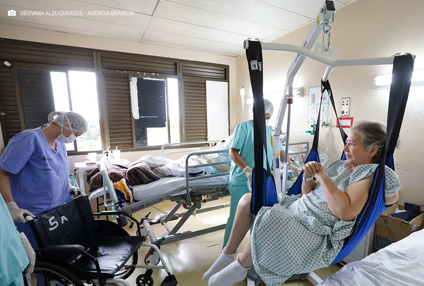 A massoterapeuta Sônia Márcia Lucena Zuikeiran, de 60 anos, internada no Hospital Regional da Asa Norte (Hran) para tratar um acidente vascular cerebral (AVC) e um câncer no ovário, aprovou o uso do guincho. “É muito bom porque a gente sabe que pode se movimentar. Eu me sinto segura”, garante Sônia.