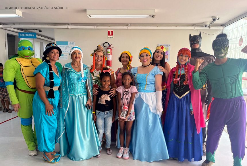 Com programação durante toda a semana nas unidades, o projeto Toucas da Alegria antecipou a celebração e visitou o Hmib na segunda-feira (9). Voluntárias vestidas de princesas distribuíram toucas de crochê temáticas de super-heróis para as crianças no ambulatório. A atividade teve, ainda, o apoio de profissionais de animação de festas, que se fantasiaram de super-heróis e ajudaram a garantir a diversão nos corredores do hospital com música e balões.