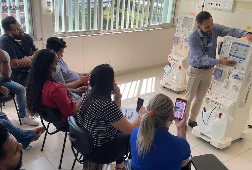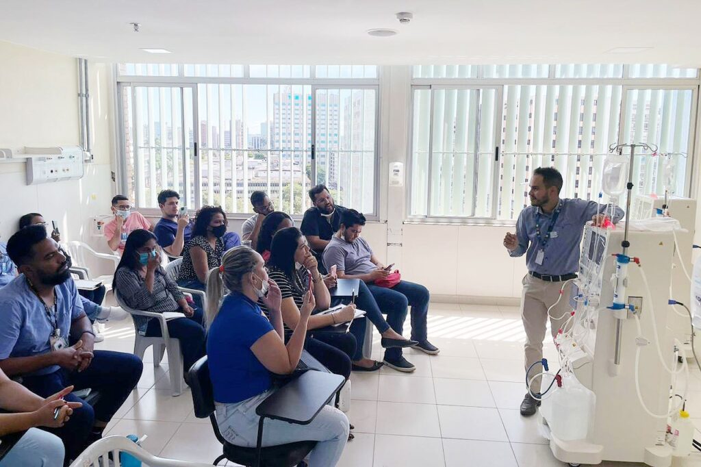 Começou o treinamento para o manuseio das novas máquinas de hemodiálise no Hospital de Base. Profissionais da Nefrologia, que também atuam no pronto socorro e nas unidades de terapia intensiva (UTIs), estão realizando a capacitação. Ao todo, 210 colaboradores estão sendo treinados – entre médicos, enfermeiros e técnicos de enfermagem.