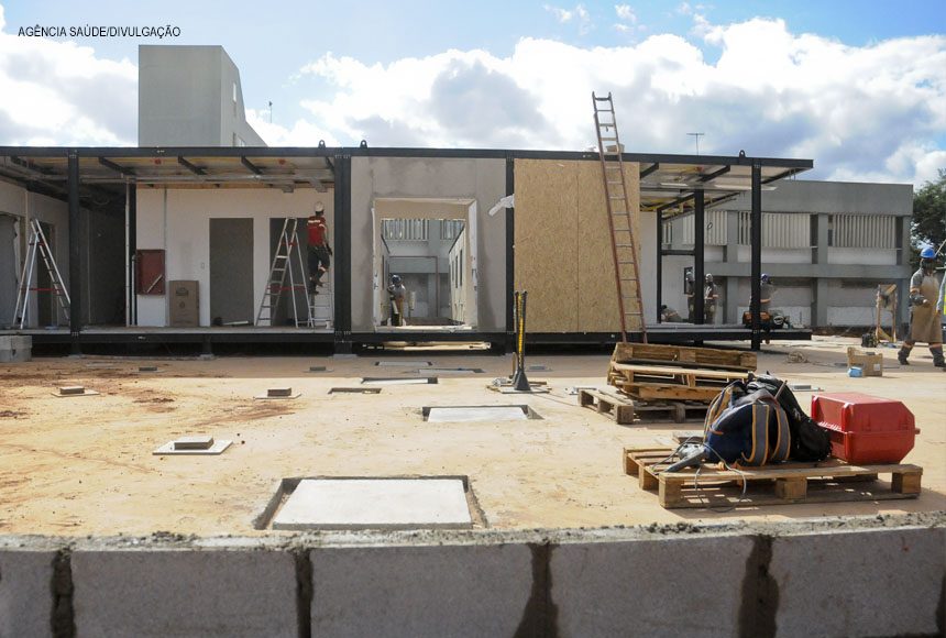 Por dia, em torno de 10 módulos têm sido montados no local. Depois disso, será necessário encaixar as estruturas, instalar toda a rede de gases, elétrica e hidráulica, pintar a unidade, colocar piso, móveis e levar as camas, monitores e respiradores para montar os leitos.