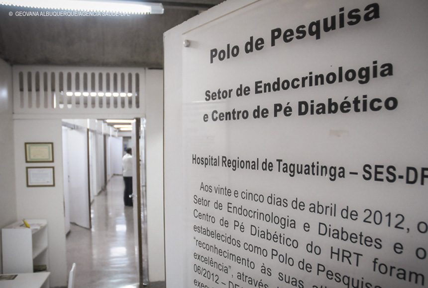 Por ser referência no atendimento aos pacientes com Pé diabético no Distrito Federal, o Hospital Regional de Taguatinga (HRT) foi escolhido para ser o Centro Coordenador do Estudo Nacional com o Fator de Crescimento (Heberprot®️). Trata-se de um produto farmacológico já autorizado e registrado em vários países que favorece a cicatrização de úlceras em pés de pacientes com diabetes. Está em fase de pesquisa clínica no Brasil como requisito de autorização e registro da Agência Nacional de Vigilância Sanitária.