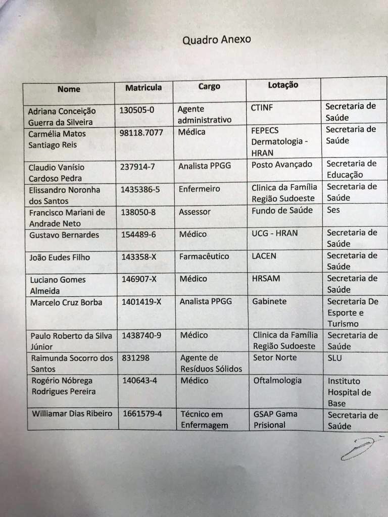 A lista, multidisciplinar, é composta por médicos, enfermeiro, analista, agente administrativo, técnico em enfermagem, agente de resíduos sólidos, farmacéutico, assessor.