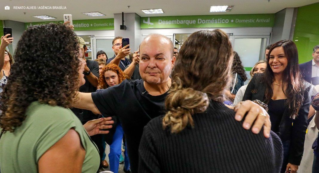O governador Ibaneis Rocha e a primeira-dama Mayara Noronha Rocha recepcionaram, nesta sexta-feira (05/Dez), o último grupo de estudantes da rede pública que participou do programa Pontes para o Mundo. O desembarque de 27 alunos e dois servidores no Aeroporto Internacional de Brasília marcou o encerramento da primeira edição da iniciativa, que enviou ao todo 101 jovens para um intercâmbio de 17 semanas no Reino Unido.
