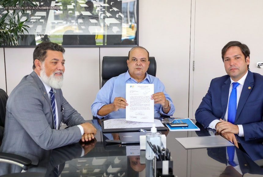 O governador Ibaneis Rocha recebeu, na manhã desta terça-feira (8), o apoio formal do Partido Social Democrático (PSD). Os deputados distritais reeleitos Robério Negreiros e Jorge Vianna apresentaram ao governante documento assinado por eles e pelo presidente regional do partido, Paulo Octávio, oficializando o compromisso de compor a base aliada.