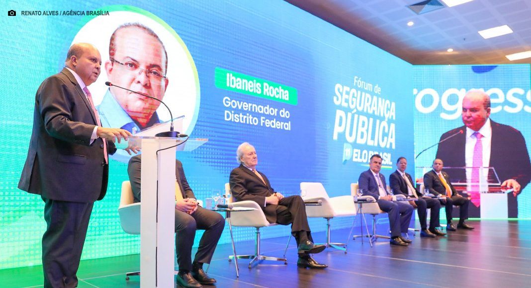 O governador Ibaneis Rocha participou, nesta terça-feira (25), da abertura do Fórum de Segurança Pública pelo Brasil. O evento reúne especialistas e autoridades em busca de soluções para o combate ao crime no país.