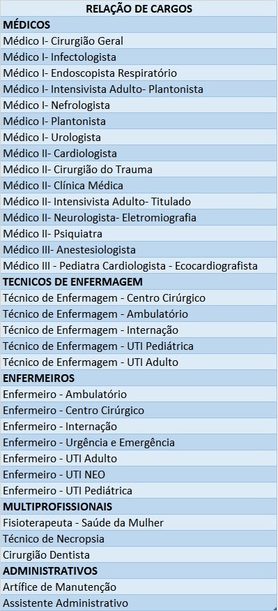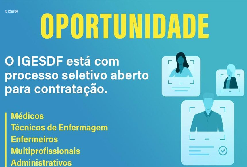 O Instituto de Gestão Estratégica de Saúde do Distrito Federal (IGESDF) vai abrir, na segunda-feira (26/4), uma seleção para recrutar profissionais para 32 cargos diferentes, entre eles, médicos de 15 especialidades, enfermeiros, técnicos de enfermagem e de necropsia, fisioterapeutas, cirurgiões dentistas, artífices de manutenção e assistentes administrativos.