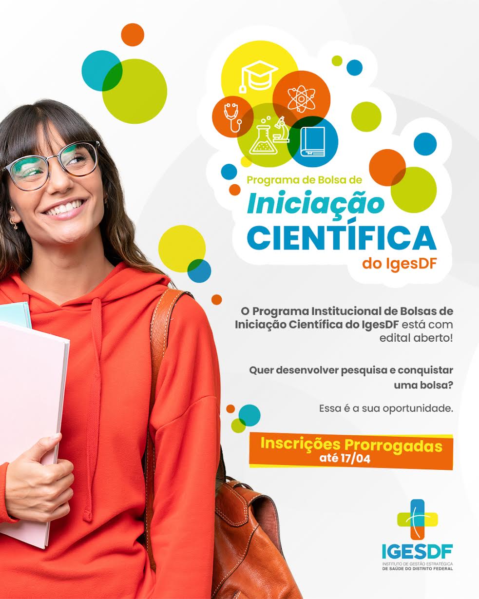 O Instituto de Gestão Estratégica de Saúde do Distrito Federal (IGESDF) anunciou a prorrogação do prazo de inscrições para seu Programa Institucional de Bolsas de Iniciação Científica (PIBIC) 2026–2027. Estudantes de graduação têm até o dia 17 de abril para concorrer a uma das 10 bolsas, no valor de R$ 500 mensais, destinadas ao desenvolvimento de projetos na área da saúde.