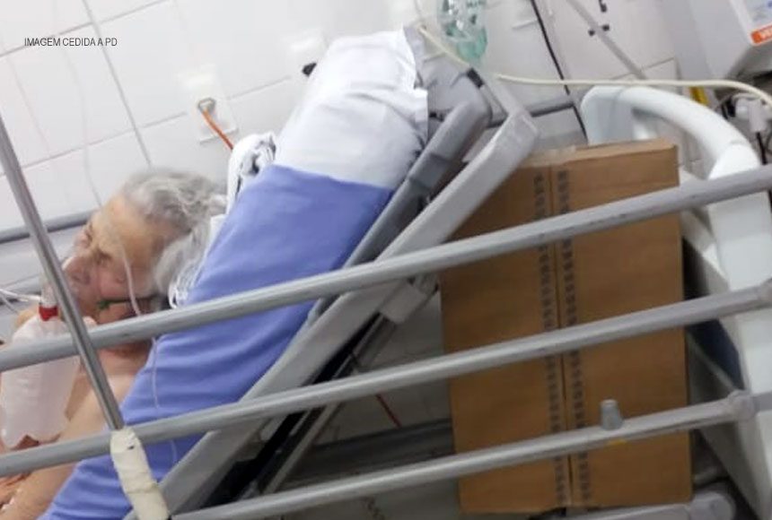 Imagens recebidas por PD mostram ao menos dois pacientes em macas mantidas em suspensão, com caixa de papelão, em leitos do PS do HRSAM.